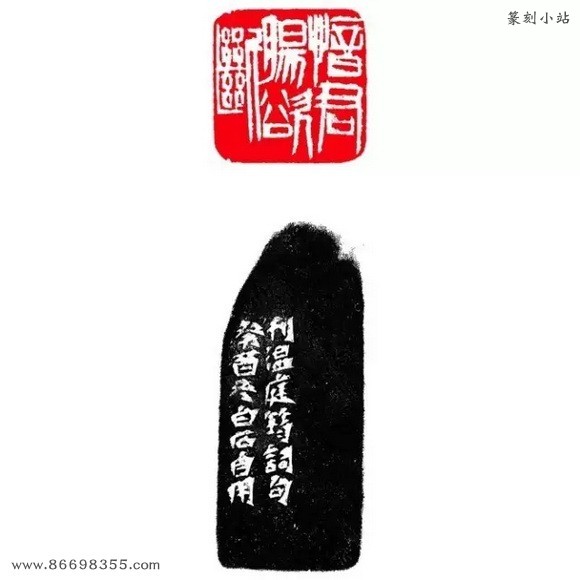 边款:刊温庭筠词句。癸酉冬,白石自用。