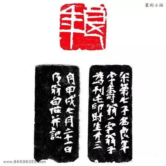 边款:余第七子名良年,字寿翁,一字翁子,为刊此印,时生纔三月。甲戌七月二十一日,乃翁白石并记。