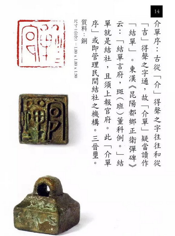 从目前的考古资料看,玺印在商周时期即已经存在,到春秋战国时期则普遍使用。由于社会发展,工商业兴旺,各国各地区之间,人际间经济等方面的交往日益频繁,因此,主要担负着凭信辩奸职能的官私玺印获得大发展,古玺印概论,罗福颐,文物出版社,历代玺印欣赏。