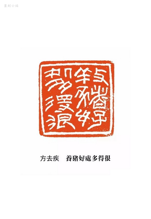 看到“一头猪是一个小型肥料工厂”这样的文字被正正经经的篆书刻出并且出版成集,眼睛几乎都被闪瞎,画风太不协调了好吗!