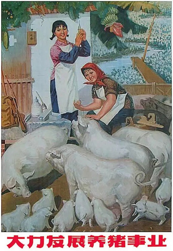 “开展母猪全留全配满怀高产全活竞赛”、“让每头母猪多子多孙”“一顿猪肉可换五吨钢”、“没有养不好的猪,只有养不好猪的人”……这些带着浓浓上世纪六十年代政治宣传味的口号标语,依稀仿佛还能看见它们被刷在红砖墙上,革命小将在前面怒吼养猪的场面。