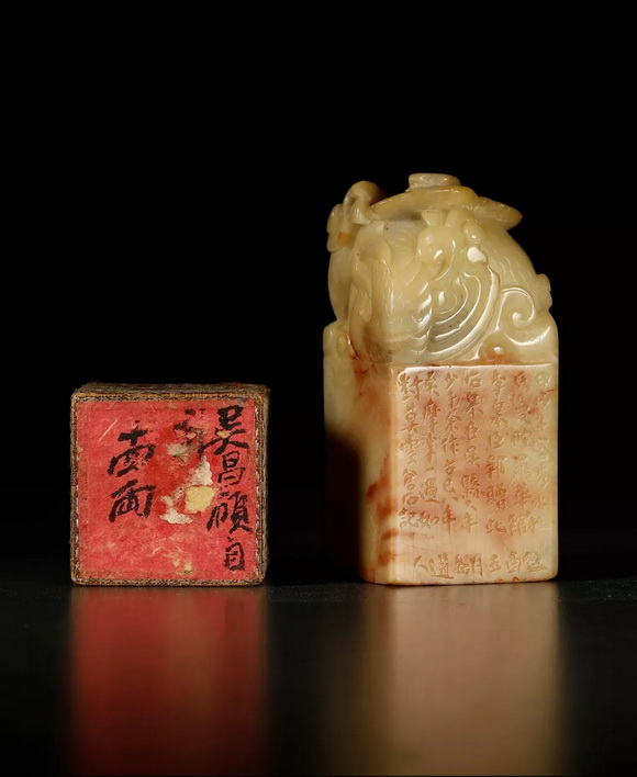 吴昌硕刻凤钮寿山石自用印是难得一见的印有吴昌硕本人名字的印章,印文”吴俊卿信印大利长寿“,为其最为喜爱之私印,且印章硕大,多次出版著录,最终以235.75万元的高价拍卖。