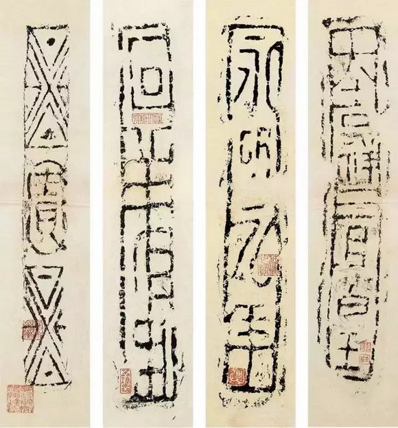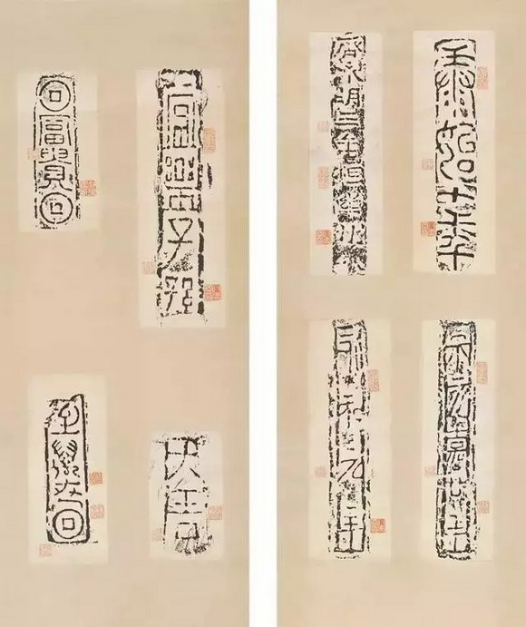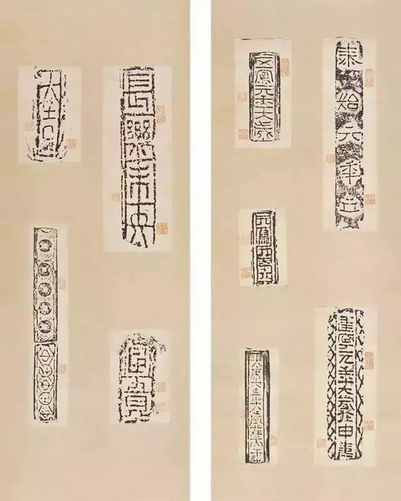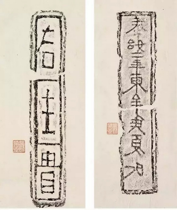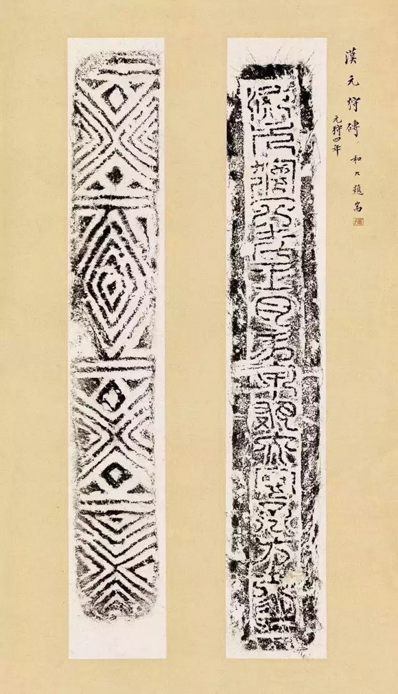 “益延寿”砖,左右各刻两只螭虎,四兽左右相背对称,形制奇古,据考证这块砖应当出自今陕西省淳化县,为汉武帝元封二年于甘泉宫兴建的“益延寿馆”之遗物。