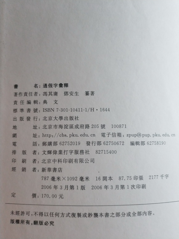 篆刻,书法,文字,历史,考古……工作者必备之书:《通假字汇释》,冯其庸 邓安生 纂著,北京大学出版社,2006年初版初印,印数极少。硬精装,大16开,1328页。汇集3500个通假字,拼音检字,查询方便。详细解析辨识。内页印制清晰,用纸很好。定价170元。