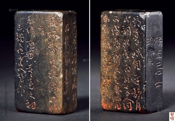 说明:印章方正光素,通身刻边款,色泽古朴,包浆肥厚。