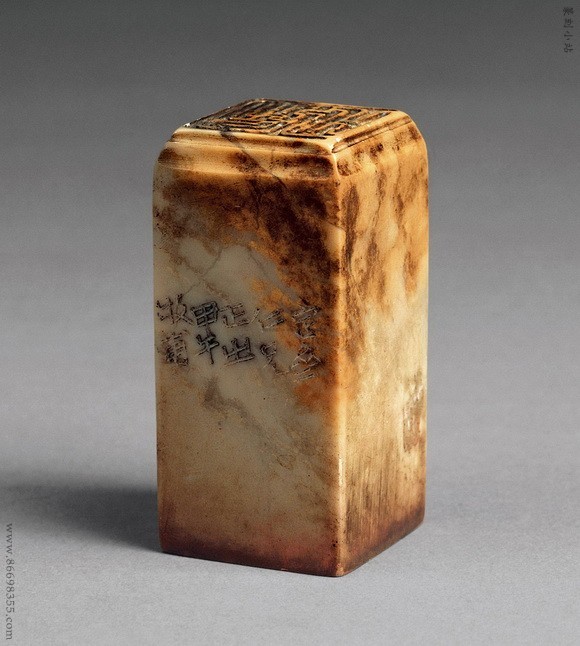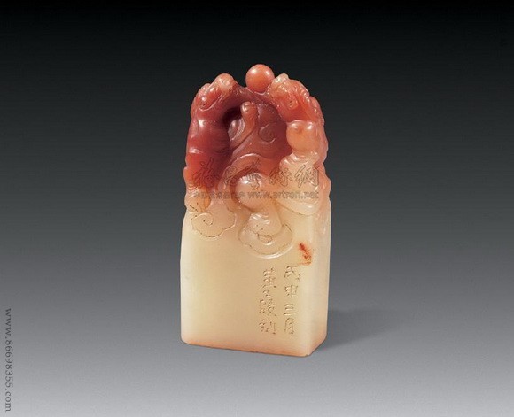 0578 清 黄士陵刻双龙钮寿山桃花芙蓉石章