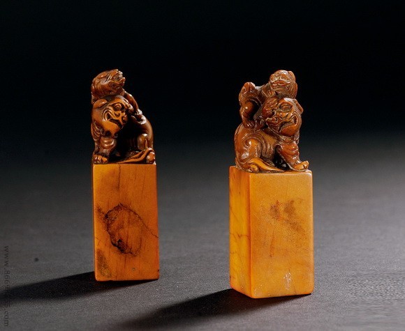 1080 清 黄士陵刻寿山牛角冻瑞兽钮章