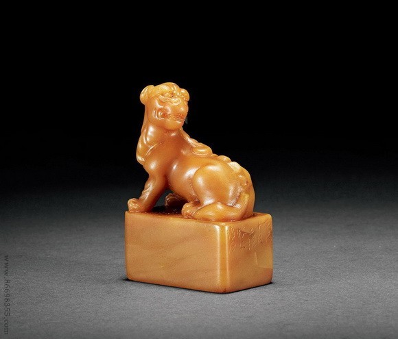 1134 清 黄士陵作黄芙蓉狮钮方章