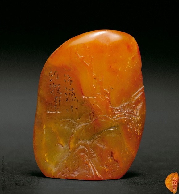 说明:浅浮雕随形雕出山石花草,巧妙运用原生纹理。