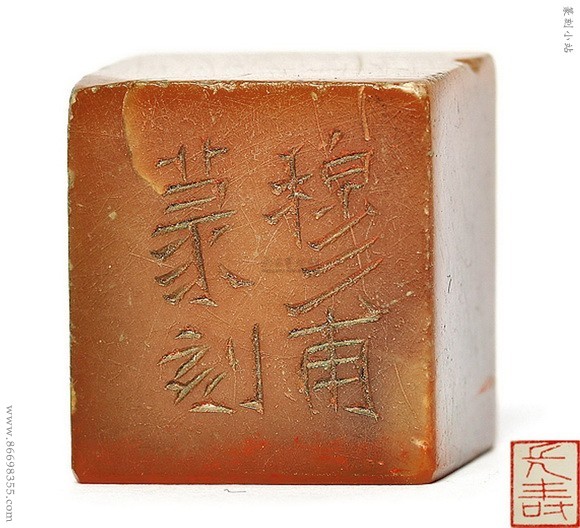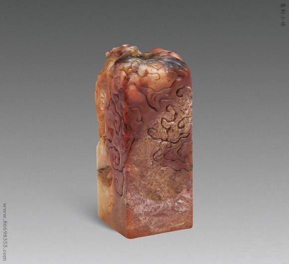 红寿山的印材阴刻的云纹,阳雕的苍龙,由于年代的久远,印章云纹一面呈现出苍老的白色灰皮,越发幽然古韵。