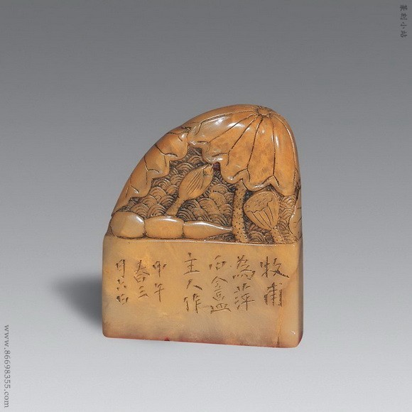 0367 清 黄士陵作黄寿山冻莲荷藕纹钮印