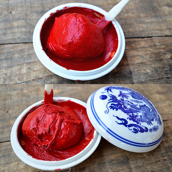 鲜艳程度。印泥以红色系居多,真正纯朱砂的印泥,颜色的鲜艳程度,都不及人工合成的颜料,因此可以留意比较。纯朱砂的印泥,颜色都很复杂,也就是像几种颜色叠加的感觉,而添加了合成颜料的或者纯合成颜料的,就是很单调的呈色。朱砂的特点是颜色可以持久保持,而不是非常鲜艳。