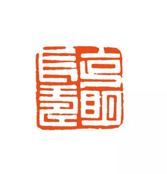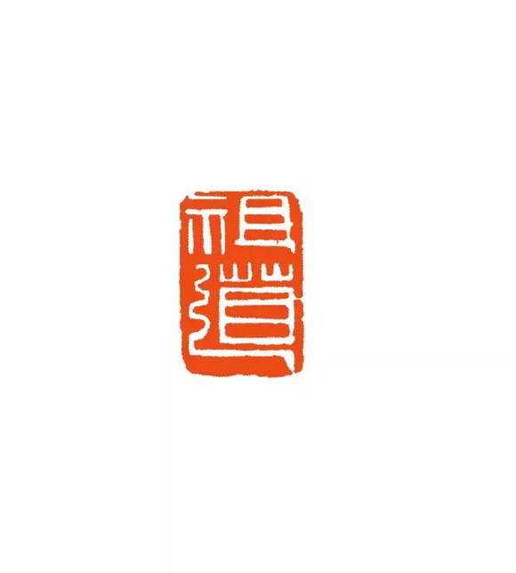 在平和端庄的秦汉印形式中加入了类似唐宋官印的装饰性线条,文字具有了美术化倾向。“祖”字最后一横收笔往右下走与“道”字走之底形成呼应,横线平行线距不等同, 有疏密变化,此印体现用笔的方式很有抒情意味,笔意完全体现邓石如“以书入印”,刀笔相融。刀意体现笔意,线条粗细变化大,用刀一冲而过留下了刀痕。整个印面气韵生动。