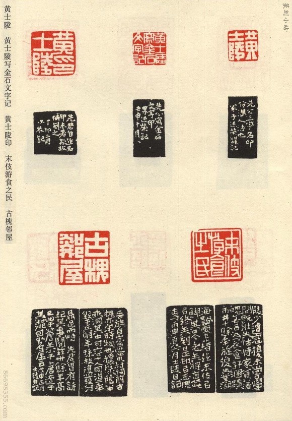 黄牧甫(1849-1908),安徽黟县人,原名士陵,字牧甫,亦作穆甫、穆父,后以字行。晚年别署黟山人、倦叟、倦游窠主。其父博雅能义,著存《竹瑞堂集》。沙孟海题名。黄牧甫大巧若拙、返朴归真,以极其平和恬淡的气度,在一片要求变化的呼声中,不盲从、不妄动,最终以其非凡的艺术成就使印坛为之一振。