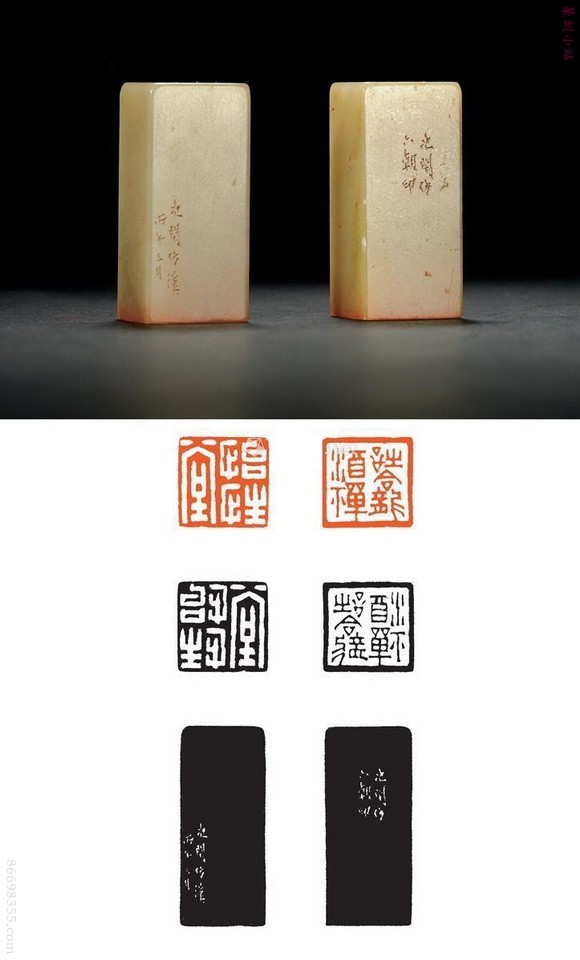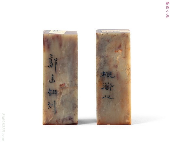 5230 清中期 赵之琛为李增厚刻昌化石对章 (一对)