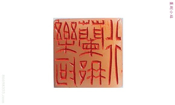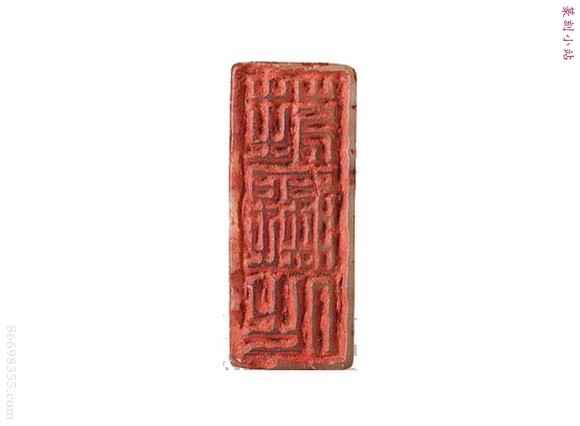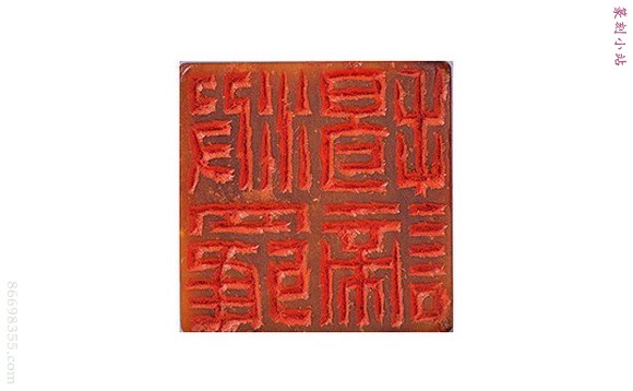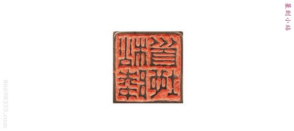 本章为平顶方章,石质细腻润泽,肌理深褐,通体一色,纯净无暇,四方素材,虽不饰雕琢却显雅致,保存有加。边款为“次闲篆,甲午六月”,印文为“松岭首地”。印文由上而下从右至左顺序排列。此章为赵次闲作品,材质珍贵,篆刻精致,小中见大,实乃赵次闲一生的精品,允为典藏级的珍品。此章印文刀法滞重而蕴藏轻峻,是浙派的典型结构法,又可见其用心之谨慎。