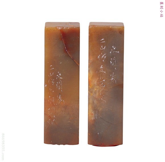 7274 赵次闲 寿山石双螭钮佛经偈语印