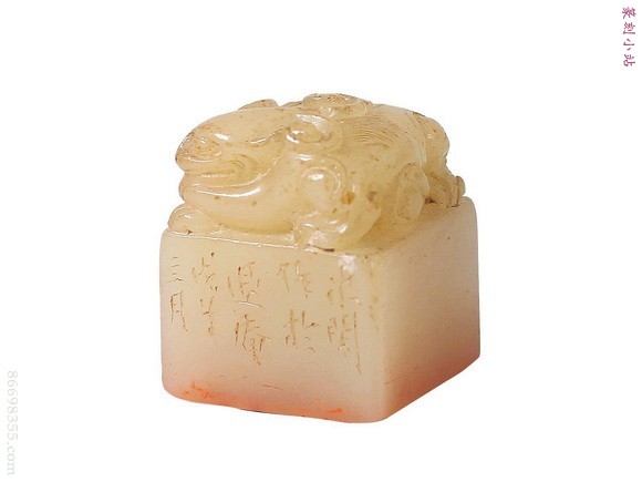 7273 赵次闲 白芙蓉石瑞兽钮佛偈语印