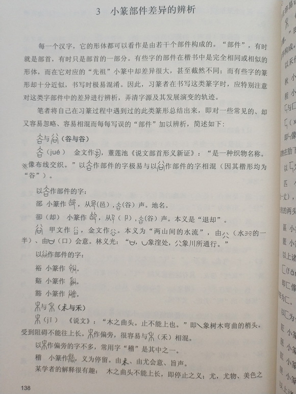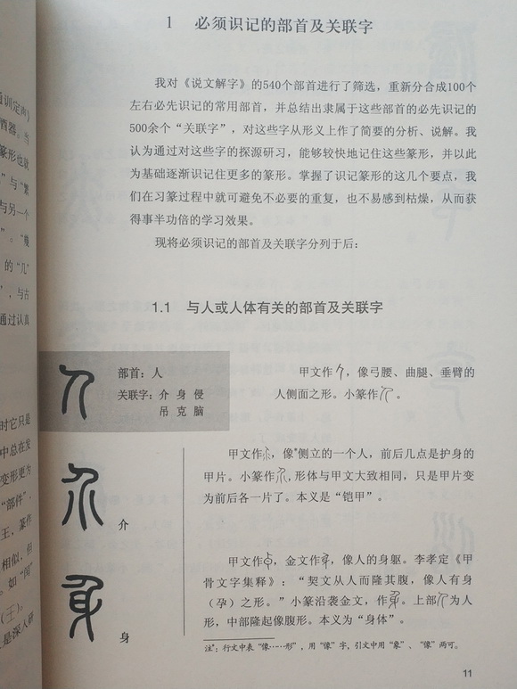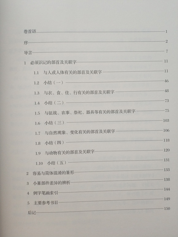 识小篆捷径,500字通篆,帮助学篆者迅速掌握篆字要领 识记小篆的捷径,16开,152页,定价45元,500字通,汇集了林子序先生二十余年的研究精华。他找出小篆字形的规律,精挑出500字进行字形和字义上的分类,通过把一般规律以及特别的情况罗列出来,教给读者识记小篆的方法,并帮助篆刻书法学习者迅速掌握篆字要领。 内容包括:与人体有关的部首及关联字;与衣食住行有关的部首及关联字;与征战、祭祀、农事、器具有关的部首及关联字等等,还列出了容易混淆以及形体特殊的篆字。内容详实,学篆刻书法必备。 印谱.教程.技法 - 分享 加微信获取:wenbaozhai365
