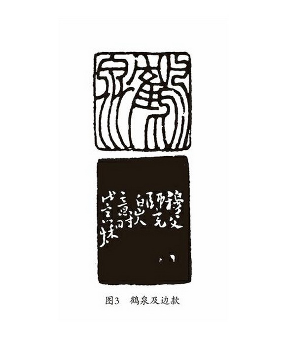“鹤泉”及边款(图3)作于1878年,边款为“牧父师完白山人意”。黄士陵学邓石如很早,他46岁所作的“逸休堂”边款中记曰:“余久不仿完白山人印章,三十年前日习之……”可见他至少从16岁就开始学习邓石如了。黄士陵在早年学邓石如之作较多,但从他开始取法吴让之之后,学邓之作就大为减少。
