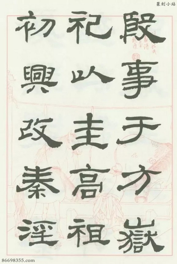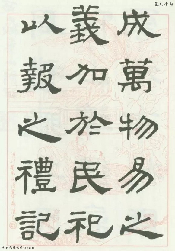 来楚生对于汉隶倾注了大量的心血,对《史晨》、《礼器》、《曹全》等汉碑进行了深入的研究,加之以对于简牍隶书的取法,又掺杂以金农为代表的清代隶书风格,形成了质朴雄浑而不失灵动飞扬的隶书风格。