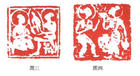 图三原印误释为“送子观音”,实则为“仙人占相”。《本行经》云:“尔时净饭王即召相师,占太子吉凶之相,……有阿私陀仙至净饭王宫求见太子,大王慈恩愿当示我,夫人手抱太子令向仙人,仙人两手抱持太子安于顶上,复置膝上,即报王言:今此太子身黄金色,头园、鼻直、足满、臂长犹如金像,具备三十二相八十种好,必定出家学道……”据此段文字的描述与印面相符。