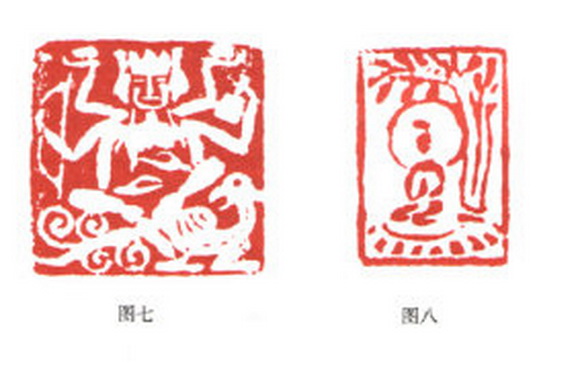 问图八原印无释文,笔者释为“思惟太子”。《普曜经》云:“尔时太子作是思惟,六年之中示大勤苦精进之行……六年之中结跏趺座,威仪进止,未尝有缺,亦无覆盖,不避风雨,不起经行,大小便利亦不屈伸,亦不倾侧,身不倚卧。春夏秋冬巍然端坐,值有众难,未曾举手,以自蔽障,诸根不乱,目不邪视,心不恐怖,鹊巢树上抱卵哺雏,粪污其身亦不弃去……。”