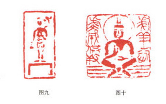 图十原印释义为“释迦牟尼像”。佛教关于座姿有严格的规定,每一种座姿都有很深的含义,释迦的坐像最常见的有结跏趺座、半结跏趺座和善结跏趺座。南北朝时期弥勒佛的标准像是菩萨装,座姿大多是两脚交叉,被称之为“交脚弥勒”。他修炼成道,先于释迦入灭,上生到兜率宫,享受种种妙乐之事,他是未来佛,是释迦的法定接班人。间为能到他的宫殿享福,至今仍有不少的善男信女竟相供养。所以此印是“交脚弥勒像”。