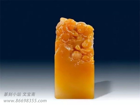 印石素以单纯净爽之美震撼人心。比如寿山的田黄,通体光灿如金,金碧辉煌,极为高贵典雅。还有巴林的福黄石,全石色如橙艳,丰韵动人。石头有两色或多色,品性也是色彩饱满纯净,鲜冽凝透,不含杂色、暗色,没有色絮、色霾、砂丁、黑点等等瑕疵。也就是说石头不管什么色彩,干干净净,单纯净爽,看着简洁明快最为重要。