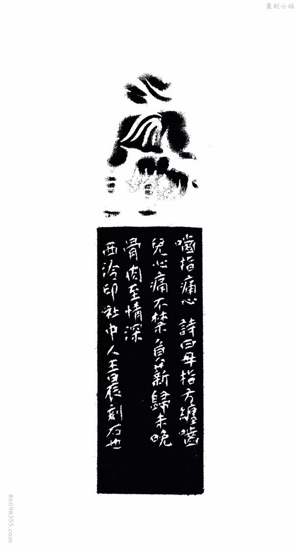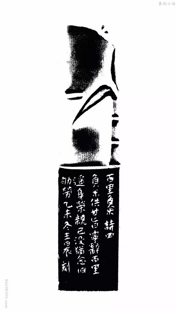 山东王晨师承李刚田,篆刻二十四孝,上下求索无所不能 印文:啮指痛心 材质:老挝石 规格:2.7cm×2.7cm×11cm 边款:啮指痛心。诗曰:“母指方缠啮,儿心痛不禁。负薪归未晚,骨肉至情深。”西泠印社中人王晨刻石也。 印文:百里负米 材质:老挝石 规格:2.5cm×2.5cm×11.2cm 边款:百里负米。诗曰:“负米供甘旨,宁辞百里遥。身荣亲已没,犹念旧劬劳。”乙未冬,王晨刻。 页码: 页 1, 页 2, 页 3, 页 4, 页 5, 页 6, 页 7, 页 8, 页 9, 页 10, 页 11, 页 12, 页 13 印谱.教程.技法 - 分享 加微信获取:wenbaozhai365