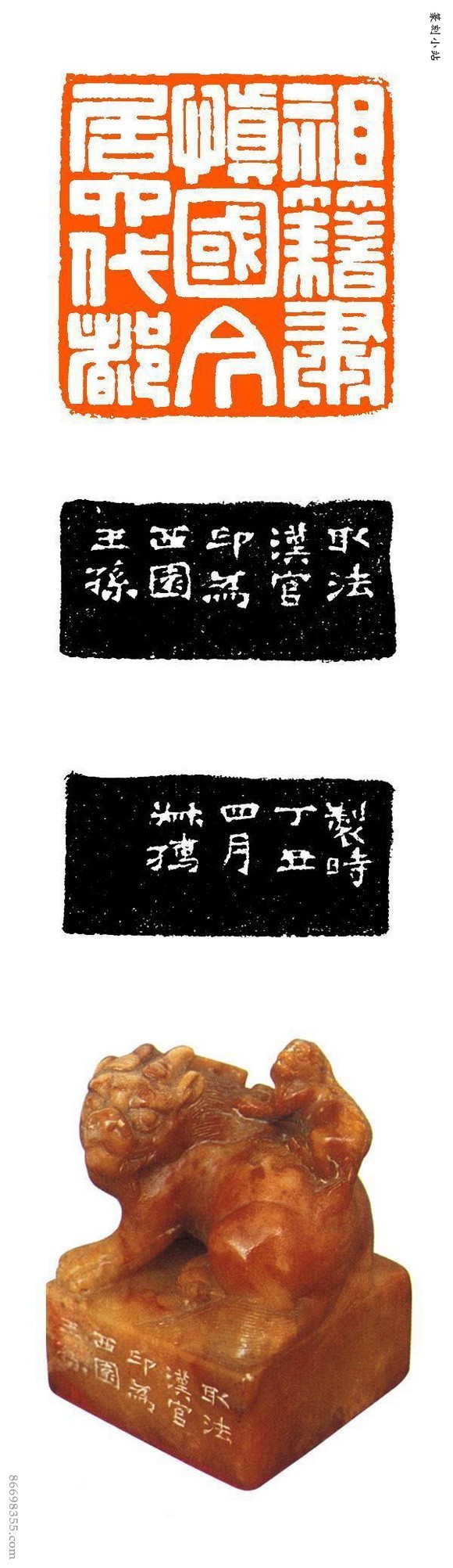 两面边款一为“取法汉官印为西园王孙”,另一为“製时丁丑四月叔孺”