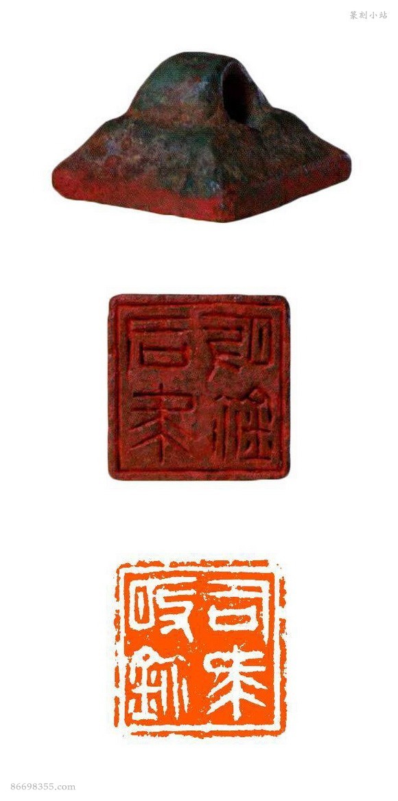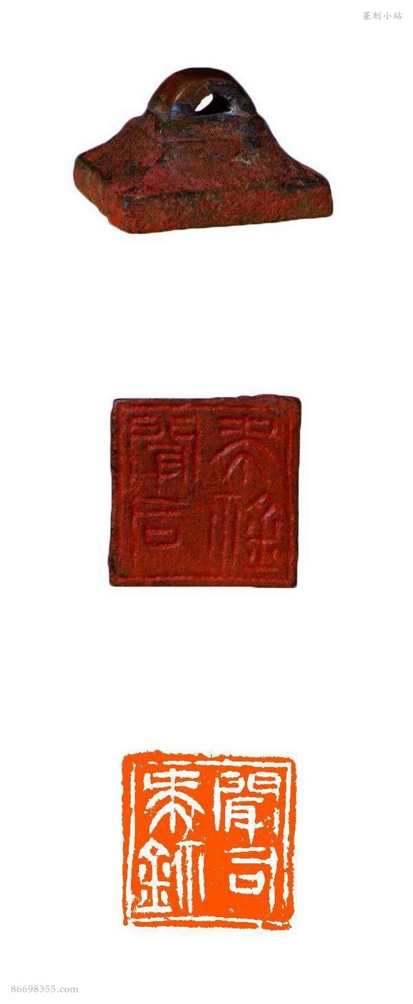 战国齐,印面边长2.3*2.2cm,通高1.4cm。铜质铸造,鼻钮。印面有阴线边栏,印文白文,战国古文字体,右上起顺读。