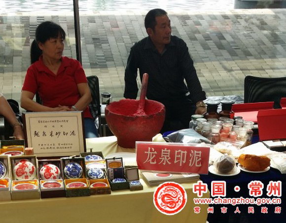 常州龙泉印泥的制作工艺独特,主要原料是由朱砂、艾绒、犀黄、珍珠粉、麝香、蓖麻油等调和而成。常州龙泉印泥的品种主要有朱砂印泥和朱 印泥,朱砂印泥色泽鲜红带紫,细腻厚重;朱 印泥则红中显黄,清丽发亮。