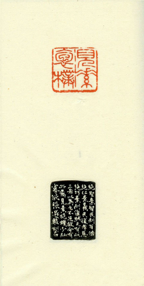 边款:绝圣弃智,民利百倍,绝仁弃义,民复孝慈,绝巧弃利,盗贼无有。此三者以为文不足,故令有所属,见素抱朴,少私寡欲。张遴骏刻石。