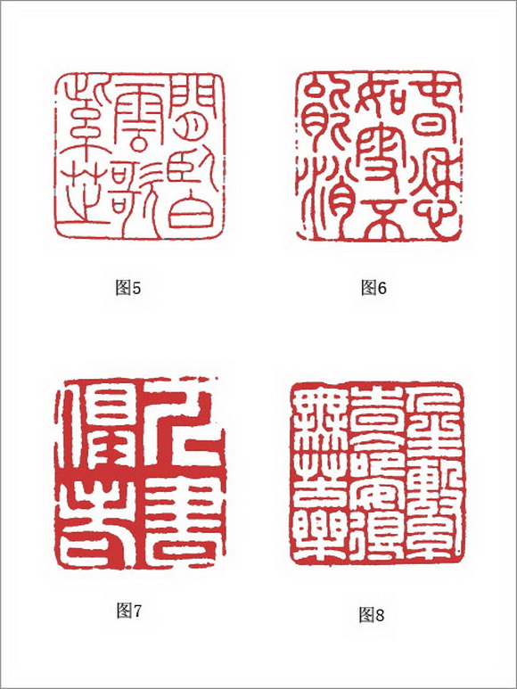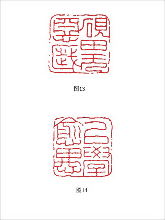 王氏篆刻中有一类个性强烈的朱文印,如“砚田无恶岁”(图13)、“以学愈愚”(图14)等印,这类朱文印的范例是秦汉封泥,王福庵不是简单地将封泥的形式移入篆刻中,而是将浙派的朱文印与封泥糅合到一起,去掉封泥的宽边,代之以残缺而曲折的细边;布局上舍去封泥中一般比较疏放的章法,代之以满布甚至以字逼边的章法;刀法上将浙派的碎切与直冲刀相结合,使线条呈现出一种起伏与流动的状态,给人以古拙、灵动、凝练、含蓄合为一体的感觉,这种感觉只能是在功底深厚的基础上的探索,仅靠做是做不出来的。