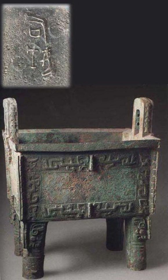 《司母戊鼎》是商代晚期最重的青铜器,1939年在河南安阳出土。因腹内壁铸有“司母戊”三字而得名。也有释作“后母戊”者。