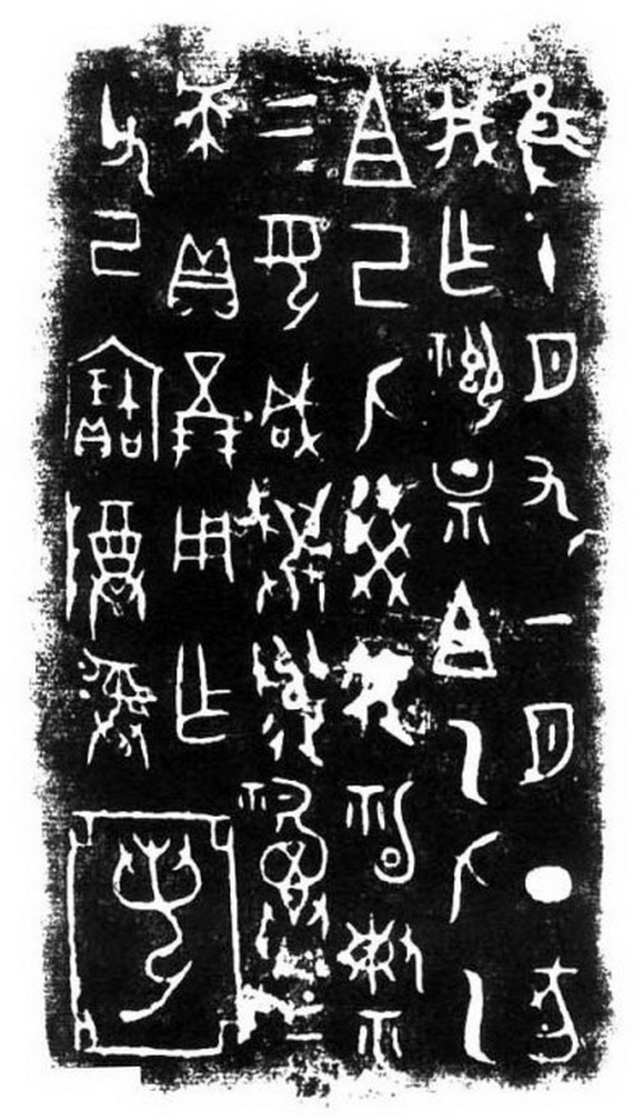 《我方鼎》,甲骨文中刻成口形的“丁”字,在这里浇铸成了实心的块面。所有点线变得圆润起来了,结体也化方为圆。其中因粘并和锈蚀形成的金石气和点线面的对比,极大地丰富了作品的构成关系。