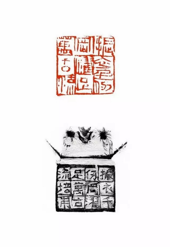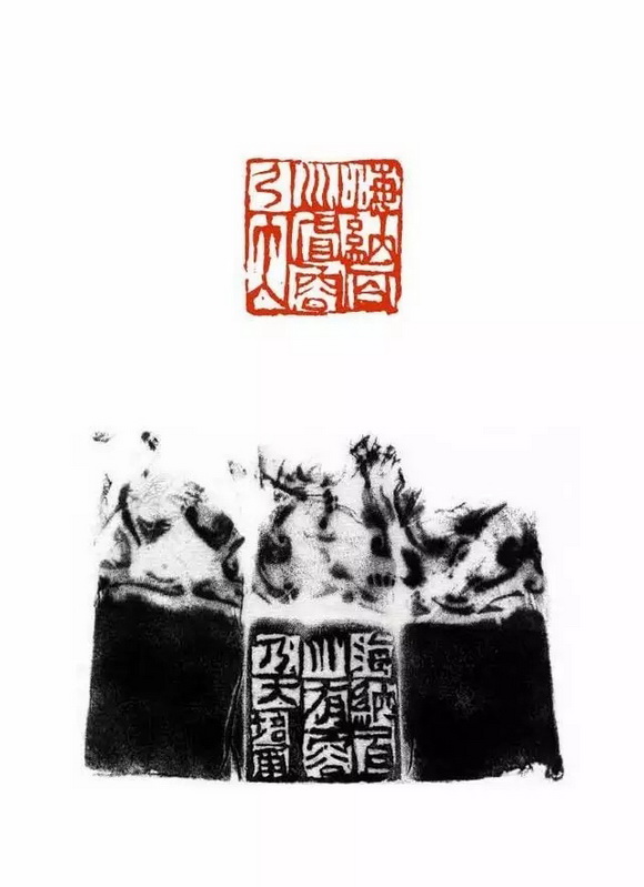 但是,到了篆刻自觉发展的元明,随着文人士大夫对远古时篆字的重新把握与认识,以及他们用毛笔来描摹古代篆字过程中所进行的合乎书法艺术发展规律的努力,从而导致了相应篆字“笔法”的产生。这种合乎书法发展规律的重大突破,在以篆字为主要表现媒介与依托的篆刻艺术中得到某种程度上的反映。然而,必须指出:作为篆字的书法与篆刻艺术中的篆字之间,在所谓的“笔法”上不应该是协调一致或完全相同的。因为篆刻作为一门新兴的独立的文人艺术,它既不是书法艺术的附庸或附属产物,更不是完全依附于书法并再现书法的碑刻。因此,在篆刻创作中,过分地依赖或重视属于“书法艺术”的篆书“笔意”之表现,是不恰当的。当然,在篆刻线条中以某种“笔意”作为创作的基础,或者在篆刻线条中保留部分篆字线条的“笔意”也是必须的。因为它有助于篆刻表现能力的增加,有助于篆刻线条内涵的深化和发扬。邓石如“印从书出”的巨大成功,正在于他在自己的篆刻创作实践中,很好地吸收并消化了自己篆书书法中所特有的笔意,而不仅仅是对自己篆书书法中的具体线条的机械描摹。邓石如以及稍后皖系印人在“印从书出”上的巨大成功,使得以后许多思想僵化、头脑机械的落伍篆刻参与者,在创作上发生了质的偏移,也就是说把篆刻中所必须具有的或有利于篆刻艺术表现的“笔意发挥”变成了一种对具体篆字“笔法”的刻意描摹,好像如此这般就达到“印从书出”的目的似的。显然,这种“偏移”在客观上失落或冷落了作为篆刻艺术质中之质的刀法。