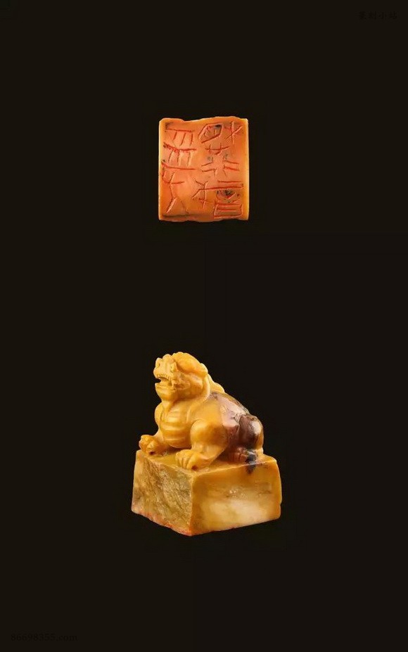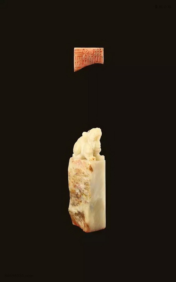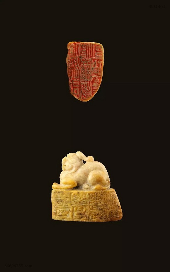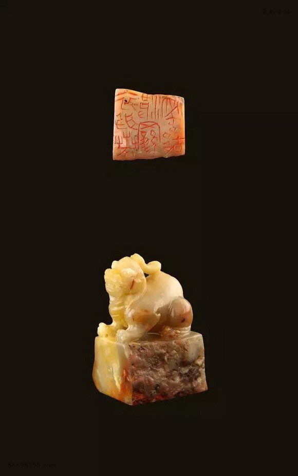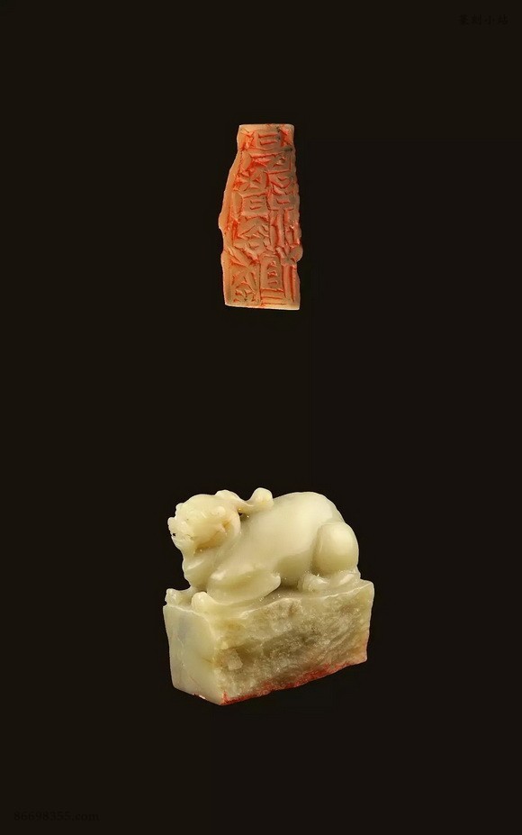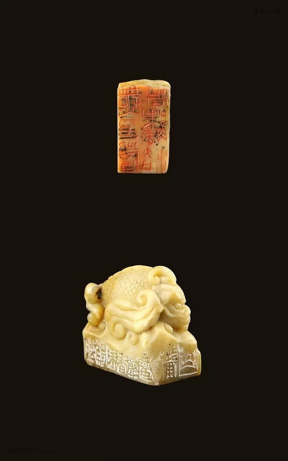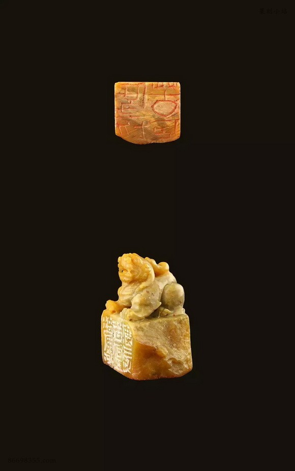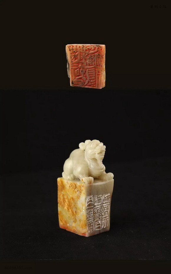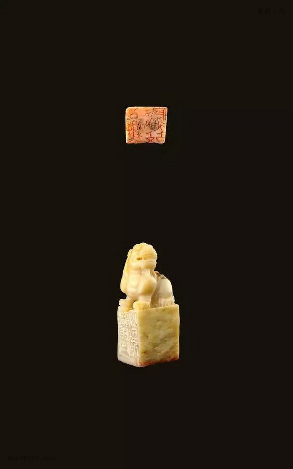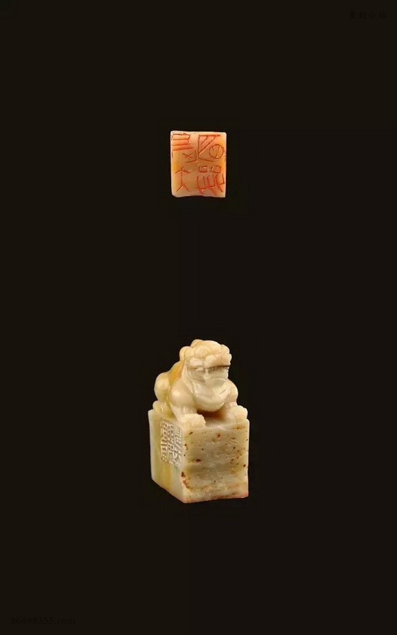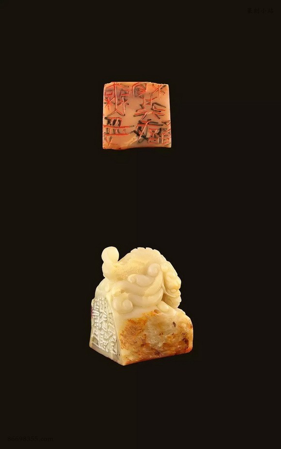 这是篆刻小站五年前在某展上看到的朱培尔在异形昌化石上所创作的一套以心经为内容的作品。刻异形印很难免俗,但他做到了。但这组印的奇妙,还是在于其中的刀法。朱培尔的刀法,用的是前人所不多见的一种最有利于揭示刀法本真的姿态。尤其是他的冲刀,会用的非常感性,可以自由随机的变化,会因为刀的不同、石头甚至石质的不同,随意、随机,自然、放纵地去运转刀的角度、速度、力度,甚至刻的深度,努力使刀法成为一种连续的、刀刀生发的、反映性情和情绪的有机表达,使运刀的节奏成为一种有机的律动。