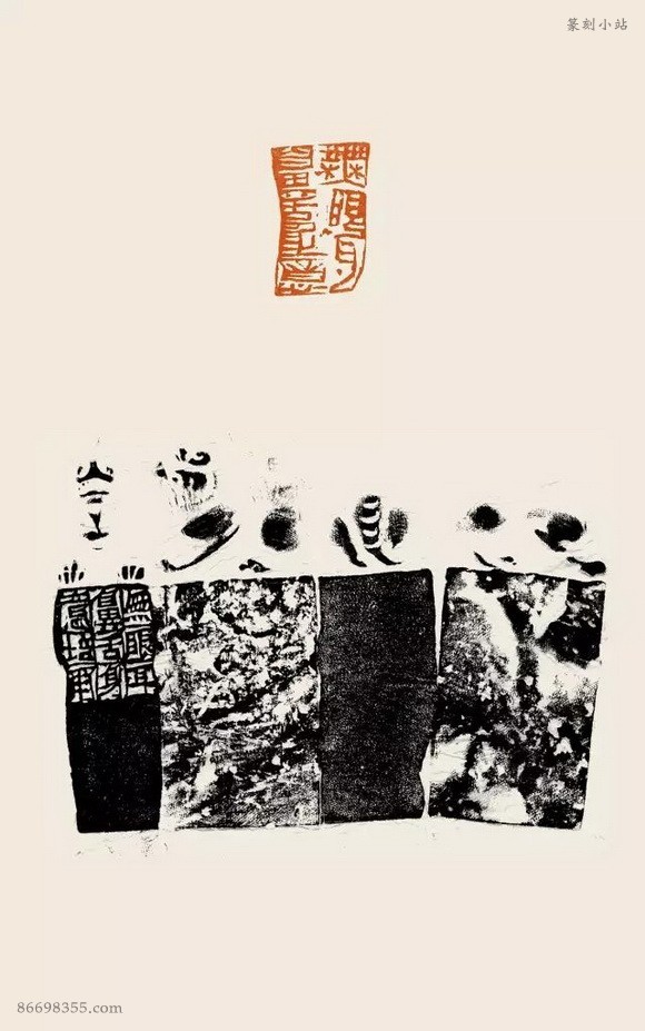 刀法本身是瞬间运动的产物,除非使用录像,它的使转、正侧、快慢等技术动作不可能在篆刻作品当中得到直接的体现,必须把刀法这种种变化尽量凝固在篆刻的线条、结构上面。因此,朱培尔在这套异形心经印谱的创作中,将刀法始终定位在印面表达的重要组成部分。也就是说他的这组印,在印面的空白和线条之间通过圆融的刀法,合而为一、相辅相成,这是一种情感的诉说,是一种心灵的表现,更是他生命的一种迹化,是自心灵瞬间律动的一种凝固。