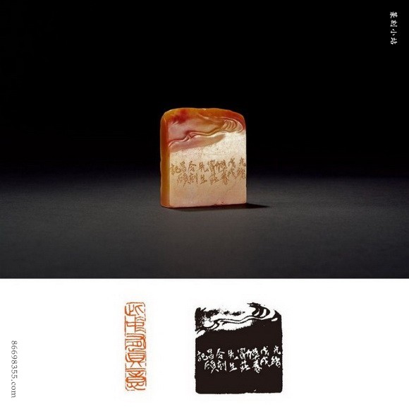西印2010年秋拍,近现代名家篆刻,精选26方作品与您共赏 吴昌硕刻三彩杜陵石王仁东自用闲章 1898年作 印文: 此中有真意 边款: 光绪戊戌暮春,勖庄先生令刻,昌硕记。 吴昌硕刻白芙蓉石闵尔昌自用螭钮印 1885年作 印文: 惟陈言之务去 边款: 乙酉冬十月为葆之同转索刻,吴俊。 吴昌硕刻青田石蒋汝藻自用印 印文: 孟薲鉴藏 边款: 老缶所凿 清 吴让之刻青田石汪鋆自用印 印文: 砚山倚声 边款: 譲翁乐为砚山治印,而每不刻款,书征得此,福厂为审定记之。 页码: 页 1, 页 2, 页 3, 页 4, 页 5, 页 6 印谱.教程.技法 - 分享 加微信获取:wenbaozhai365