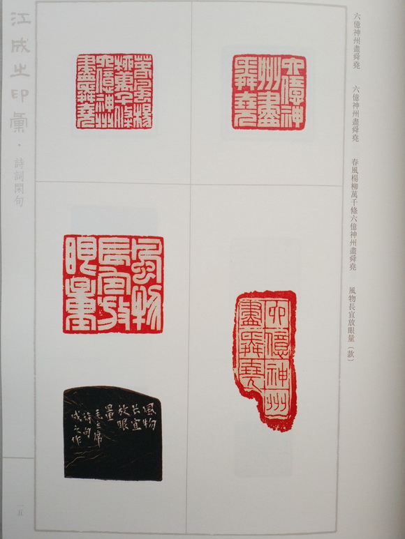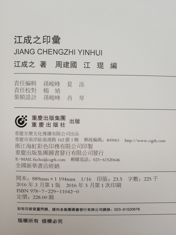 王福庵弟子,号称是浙派仅存的健在的印学大家,江成之印汇,精装16开352页,定价228元,为江成之先生多年来篆刻精品集,共收1491方印,300多边款,其章法纯正,刀法挺劲俏丽,在结构和运刀上都有很高的技巧,功力极深,加之博闻广见,章法与众不同,时出新意,作品金石感很强而富有韵味。