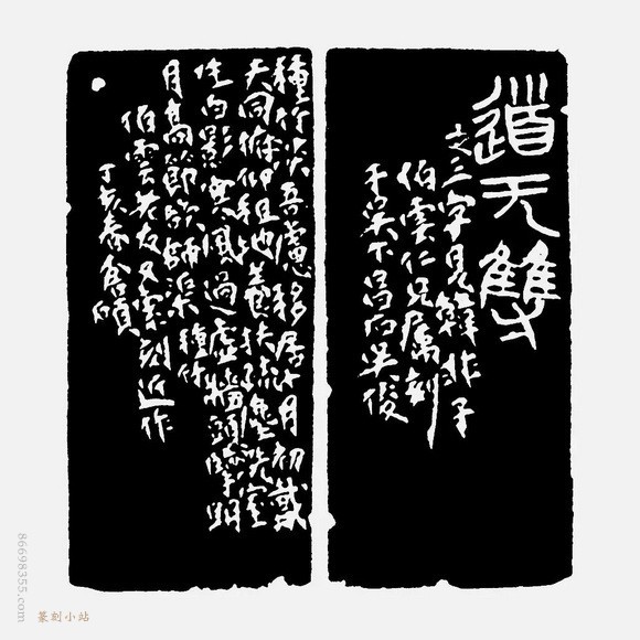 道无双。文三字见《韩非子》。伯云仁兄属,刻于吴下。昌石吴俊。种竹淡吾虑,移居十月初。戴天同俯仰,租地养扶疏。尘洗室生白,影寒风过虚。墻头揽明月,高节欲师渠。种竹。伯云老友又索刻近作。丁亥春,仓硕。
