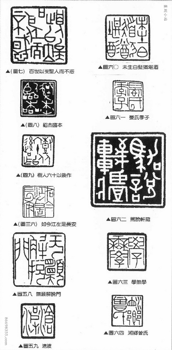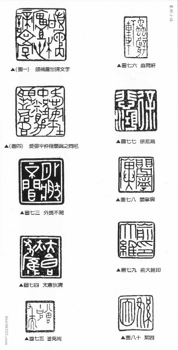 其弟子曾绍杰在《乔大壮印蜕》序中赞道:“字形无论繁简,务使揖让回互,貌接神融,以成其章。”乔大壮深谙古文字结构,对黄士陵几何构图形式的美术化手法了然于胸。他坚持“因缘生法,万有不同”的原则,凭借其超强的变通能力和对章法的苦心孤诣,以及川中文人独有的奇诡和诙谐情趣,融多种形态的线条、块面于一印之中,极尽穿插错落之能事。将印面空间划分技巧发挥到出神入化的境地,使作品散发出现代艺术的气息与美感。