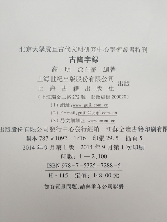 古陶字录,上海古籍出版社,收陶文字头1580,合文34种