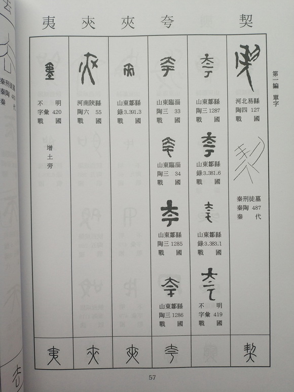 各编所录字下出注3种:出土地域、原著录书简称及页数、年代。直接在字形下标注出土地域,免除读者翻检之劳,且便于使用者能够更直观地在每一字头下了解对比不同地域古陶文在文字构形方面的异同,为学界近期比较关注的文字的分域研究提供较为翔实和直观的资料。