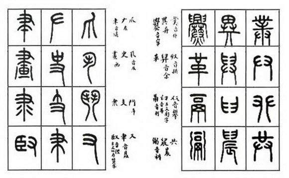 如果感觉有些碑刻残泐太多,不易辨认,亦可以选择像清人邓石如中年时期临习的那些碑帖进行着手,特别是王福厂的《说文部首》的风格正好和《泰山刻石》的风格是非常契合的,是一脉相承的,二者之间可以通过墨迹再过渡一下,也可以在《石鼓文》上多下下功夫。
