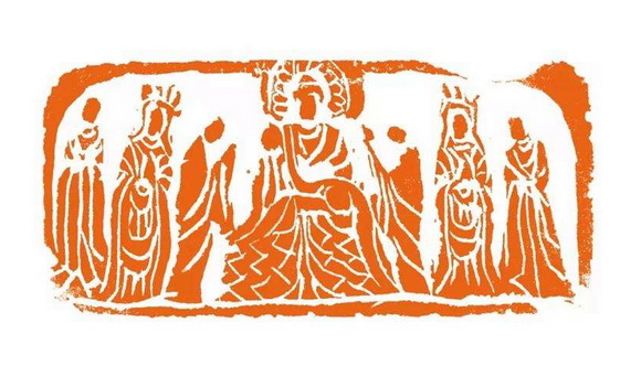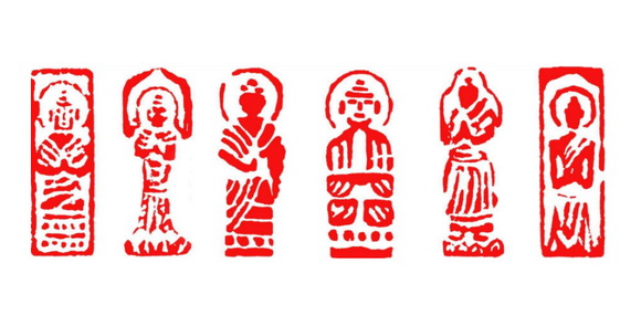 6:供养人印:供养人即造像的施主,它是当时世界人物在造像中的再现。多手执供养,头上无头光,。衣物简洁规整。最著名的皇帝皇后礼佛图,是供养人中身份最高的。