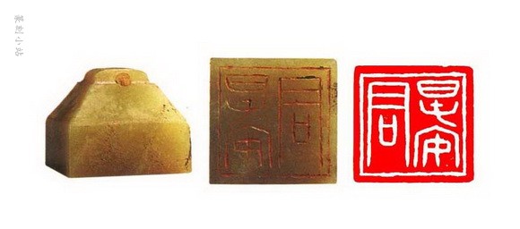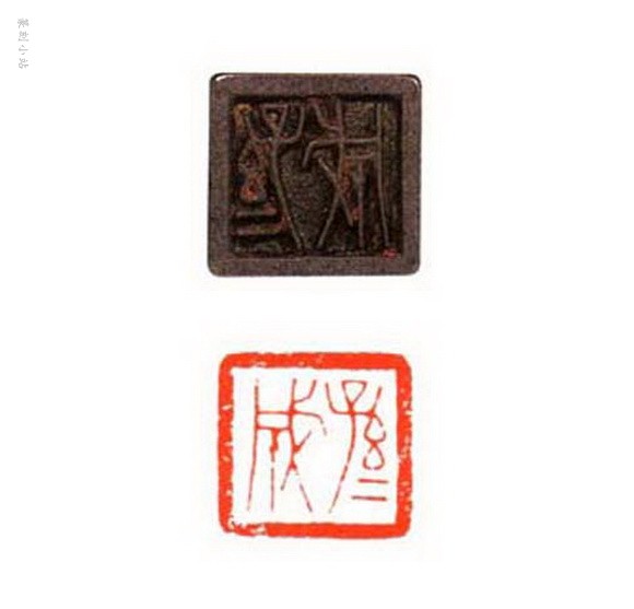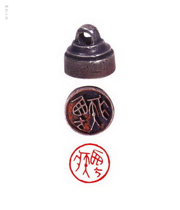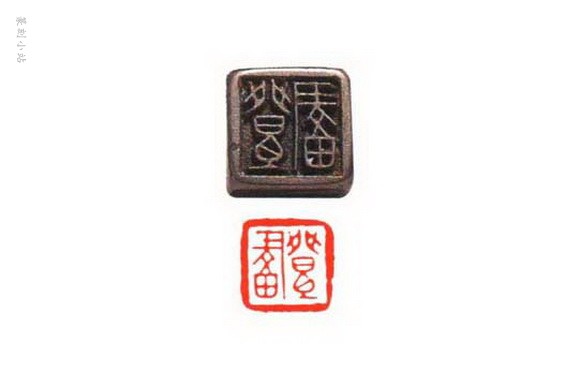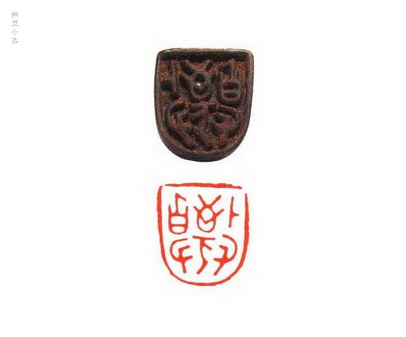 这也是一方圆形的战国玺印,与“孟徒”不同的是作者随形布字,所以文字在处理上就有了些变化。“肖”字由于右边是圆形,所以“月”字的弧度就与边框的圆边相配合;其中“孟”与“孟徒”中的“孟”字有明显不同,重心右偏,“皿”字上面一横与“子”的横画相呼应,下边一横则由于空间的不足,只好刚刚出头就收住了。从此印的章法布局中,我们可以进一步理解在篆刻的布局中,文字的造型是为章法布局来服务的。