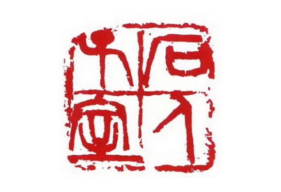 此印为一方四字白文印,各字均匀排列,线条圆浑朴厚、方圆兼施,颇具满白文汉印风范。从章法上看,此印有意形成字位上的对角线呼应。“厂”字由于字形的缘故,留红极多,作者将“厂”字右下方作残,造成斑驳风蚀之感,对角线上的“印”字的左上角也故意作残,以呼应“厂”字右下方的残缺。风格统一而形态富于变化,长短、倾斜方向及所分割的空间均有差别。